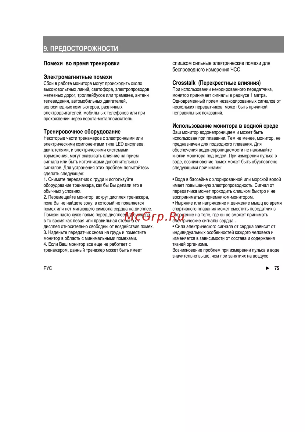 - Слишком сильные электрические помехи для беспроводного измерения чсс p.76