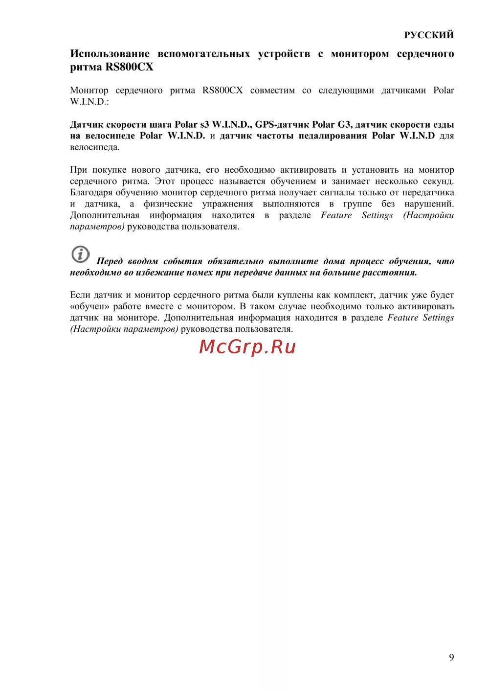 Polar RS800CX SD N — совместимость и обучение датчиков для монитора сердечного ритма [9/27]