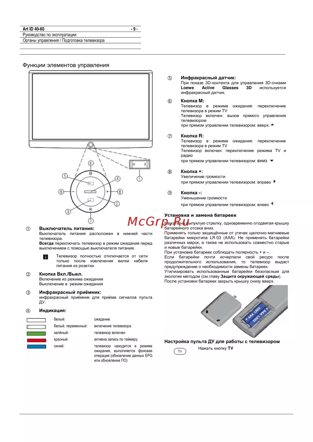 Loewe ART 60 52437W85 Black — руководство по эксплуатации телевизора: органы управления и функции [9/48]