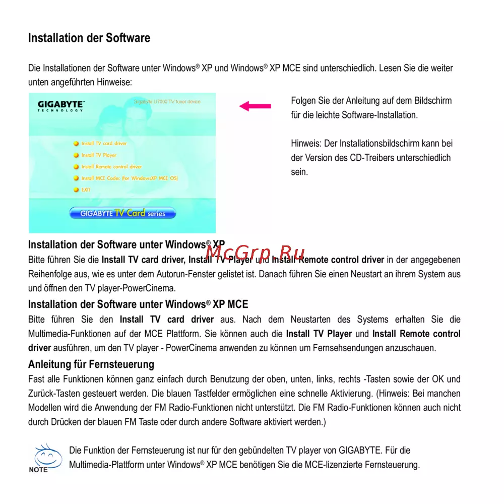 Gigabyte GT-U8000-A-RH REV. 1.0 — anleitung zur Softwareinstallation unter Windows XP und MCE [1/7]