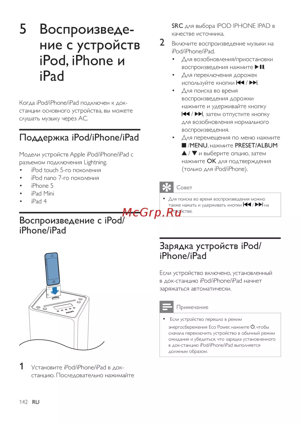 - Воспроизведение с устройств ipod iphone и ipad p.15