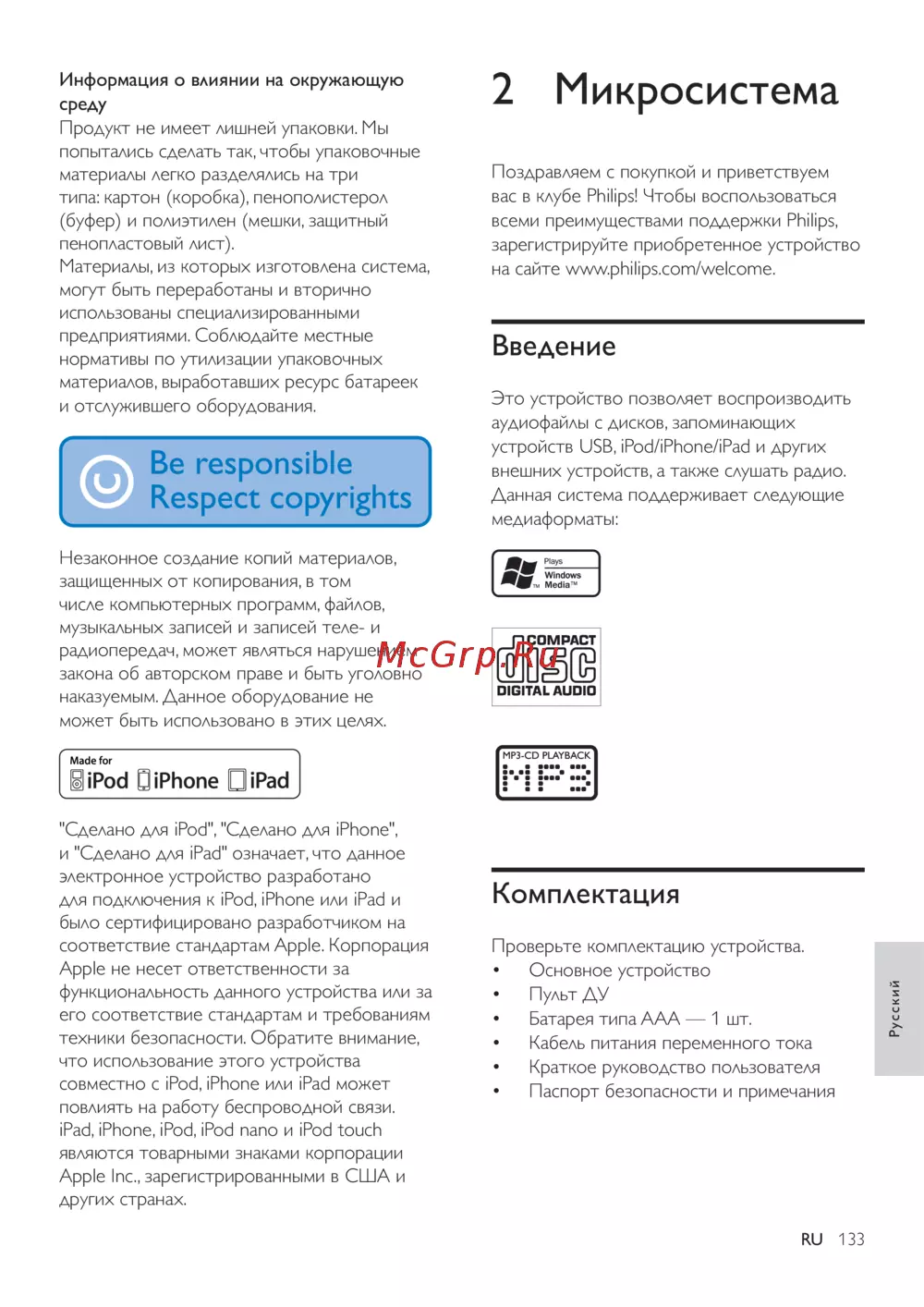- Воспроизведение с устройств ipod iphone и ipad p.15