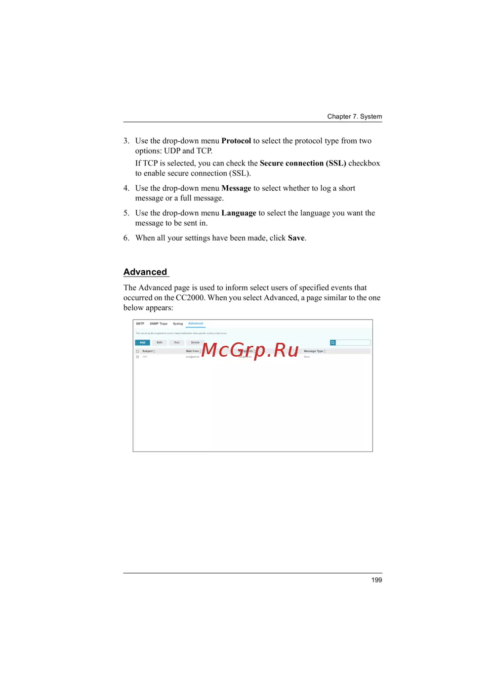 occurred on the CC2000. When you select Advanced, a page similar to the one