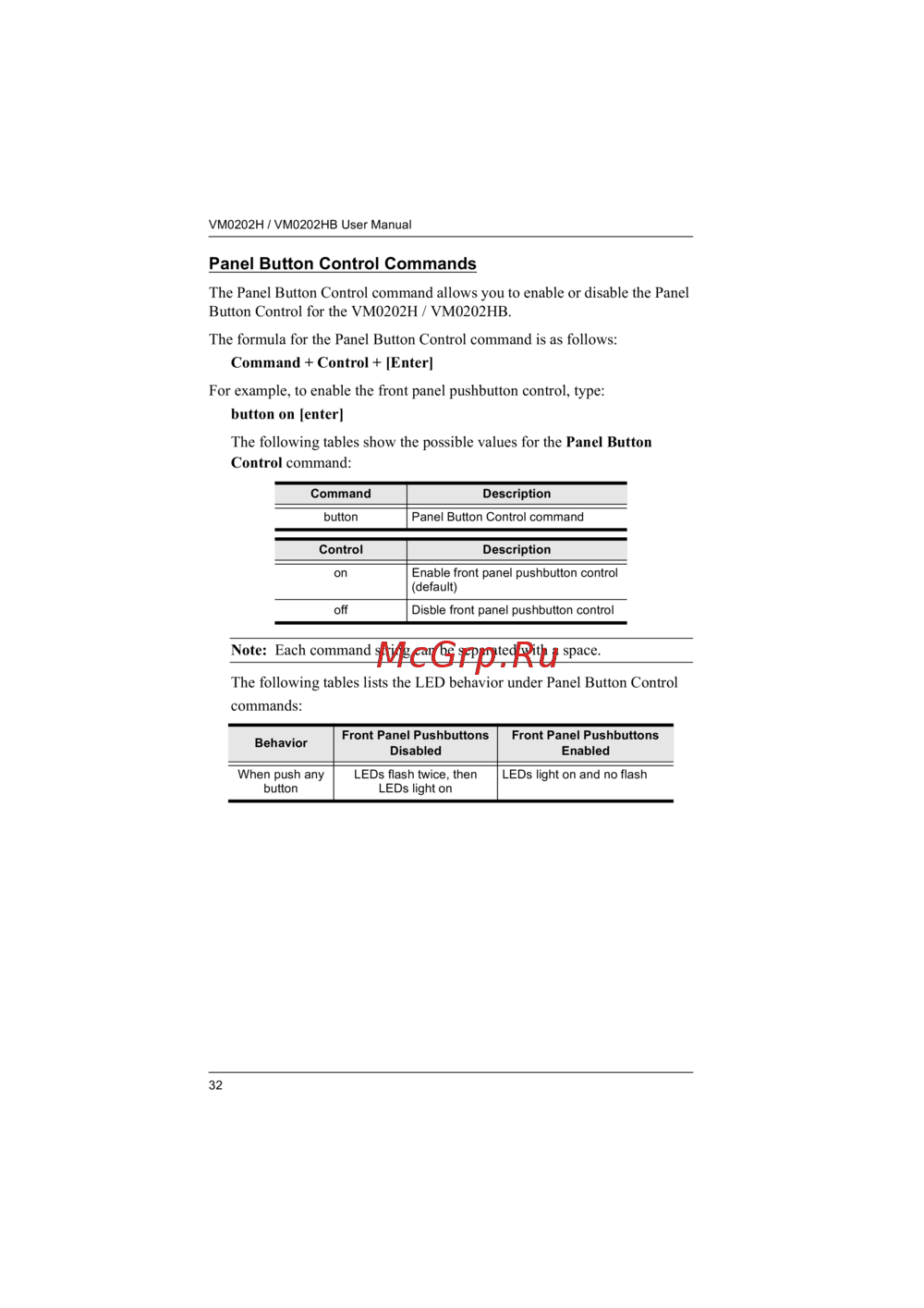 - The panel button control command allows you to enable or disable the panel button control for the vm0202h vm0202hb p.42
