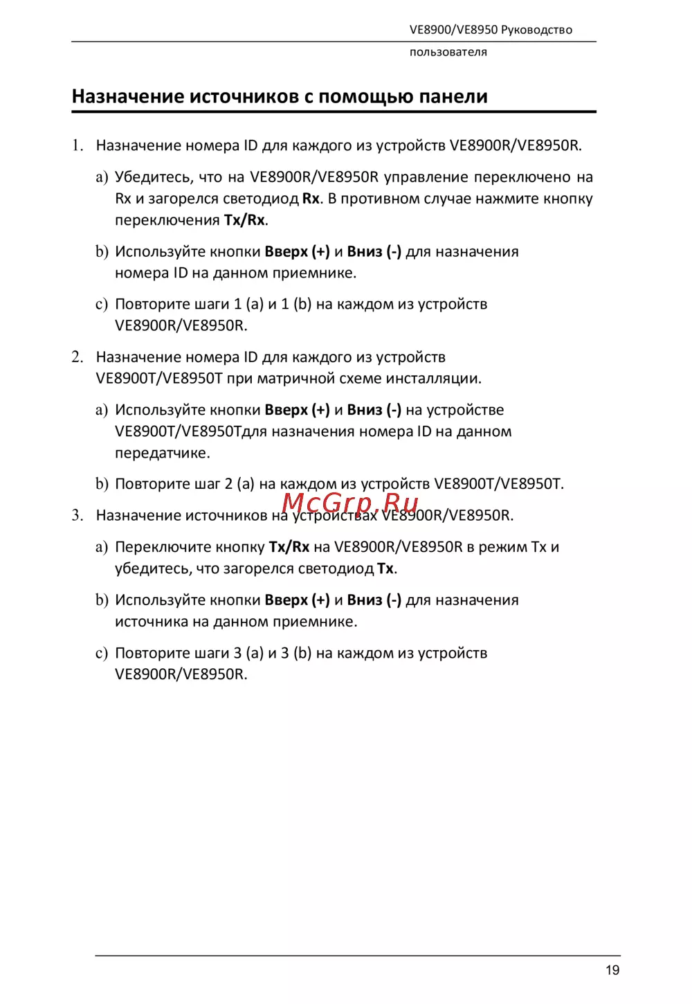 Повторите шаг 2 (a) на каждом из устройств VE8900T/VE8950T.