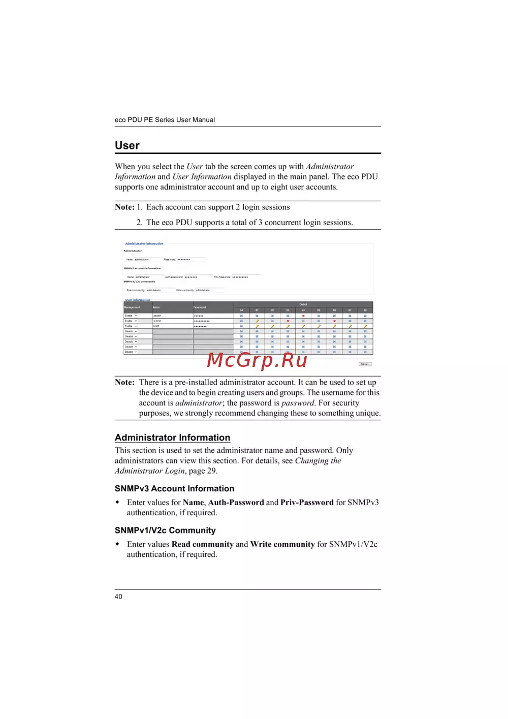 2. The eco PDU supports a total of 3 concurrent login sessions.
