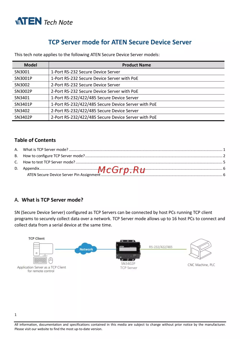 A. What is TCP Server mode? ................................................................................................................................................ 1