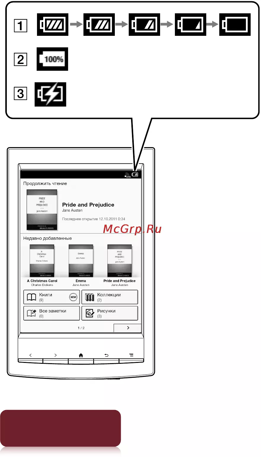 Sony PRS-T1 [38/267] Индикатор состояния батареи