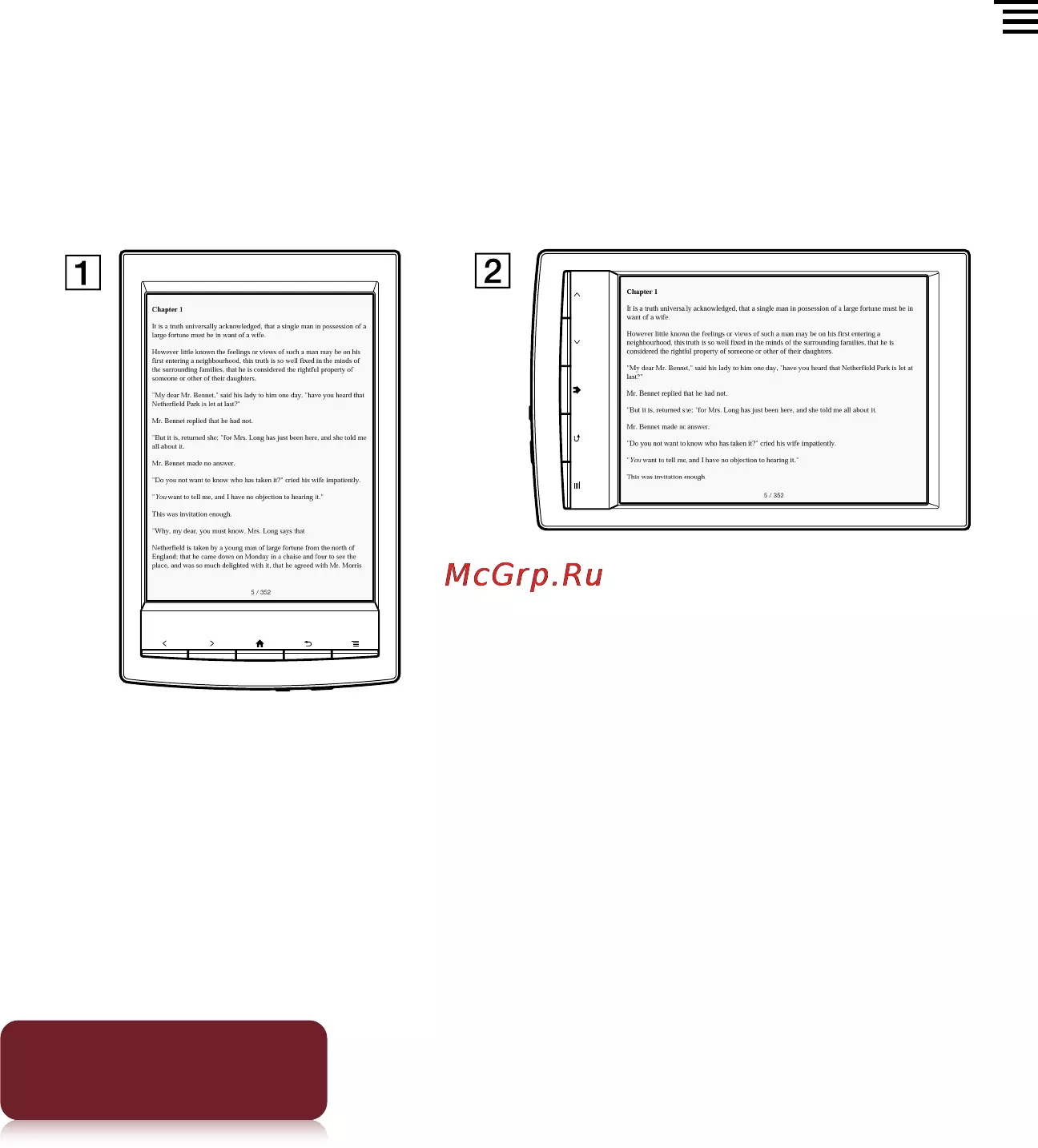 Просматривать книги можно в портретном или в