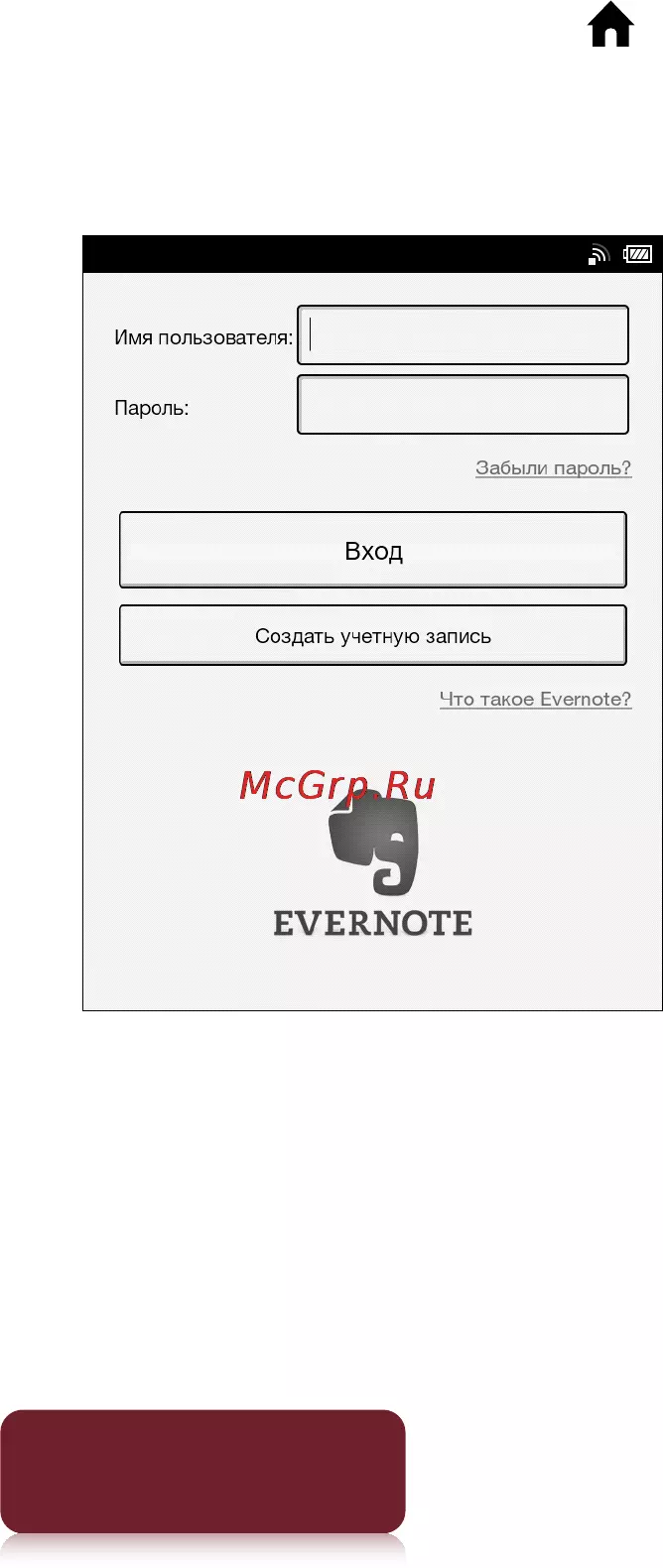 Появится экран входа в Evernote.