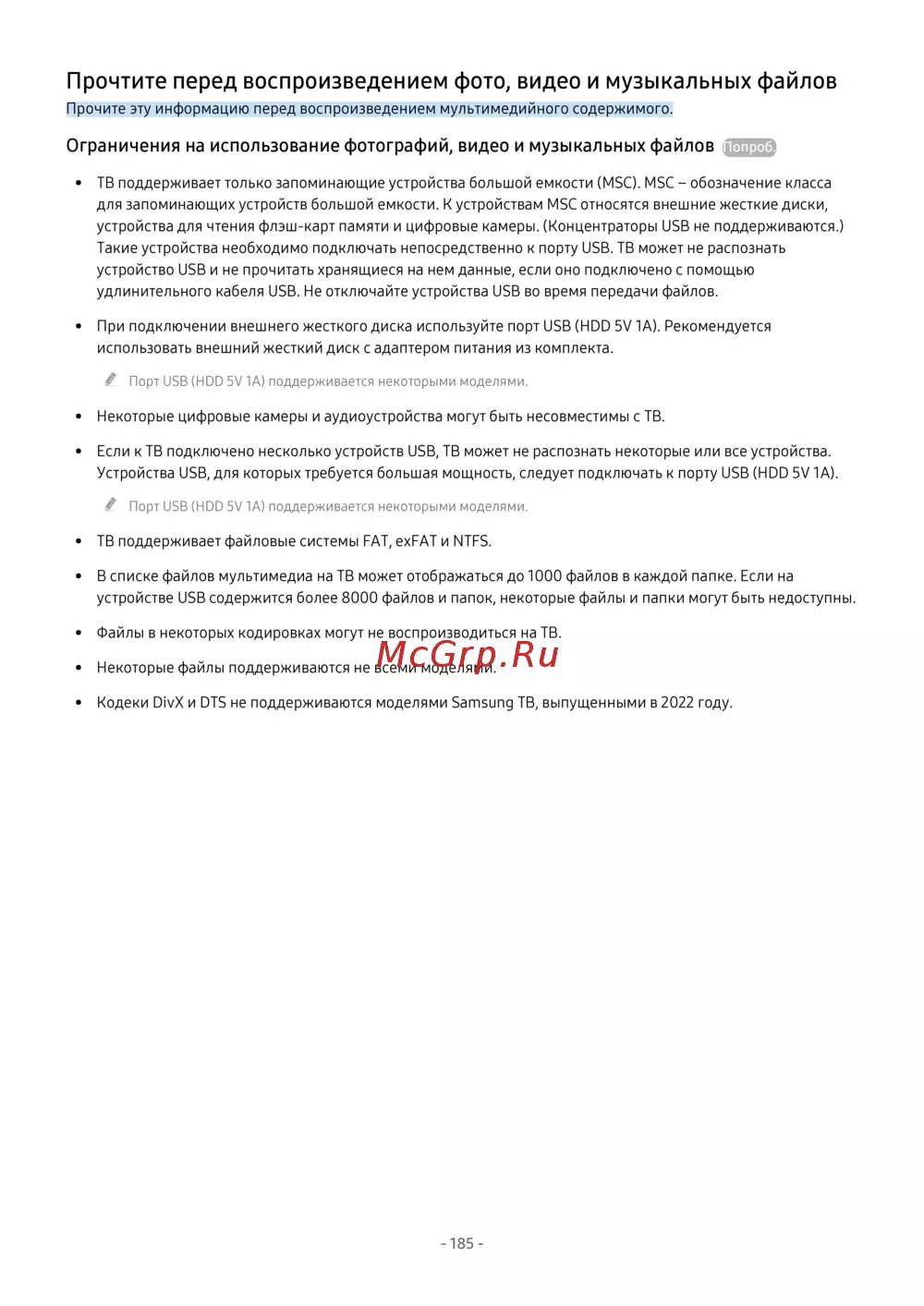 • Кодеки DivX и DTS не поддерживаются моделями Samsung ТВ, выпущенными в 2022 году.