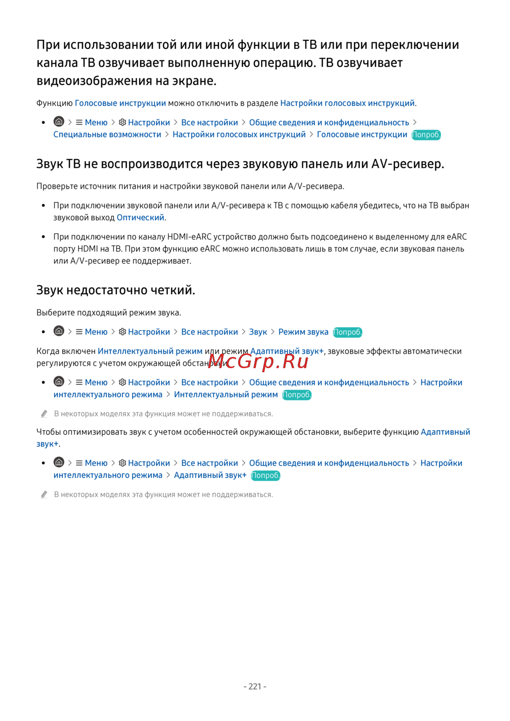- Работа с тв с включенной функцией голосовые инструкции p.283