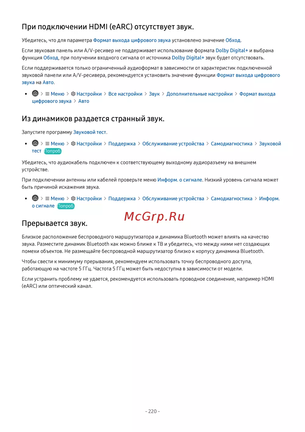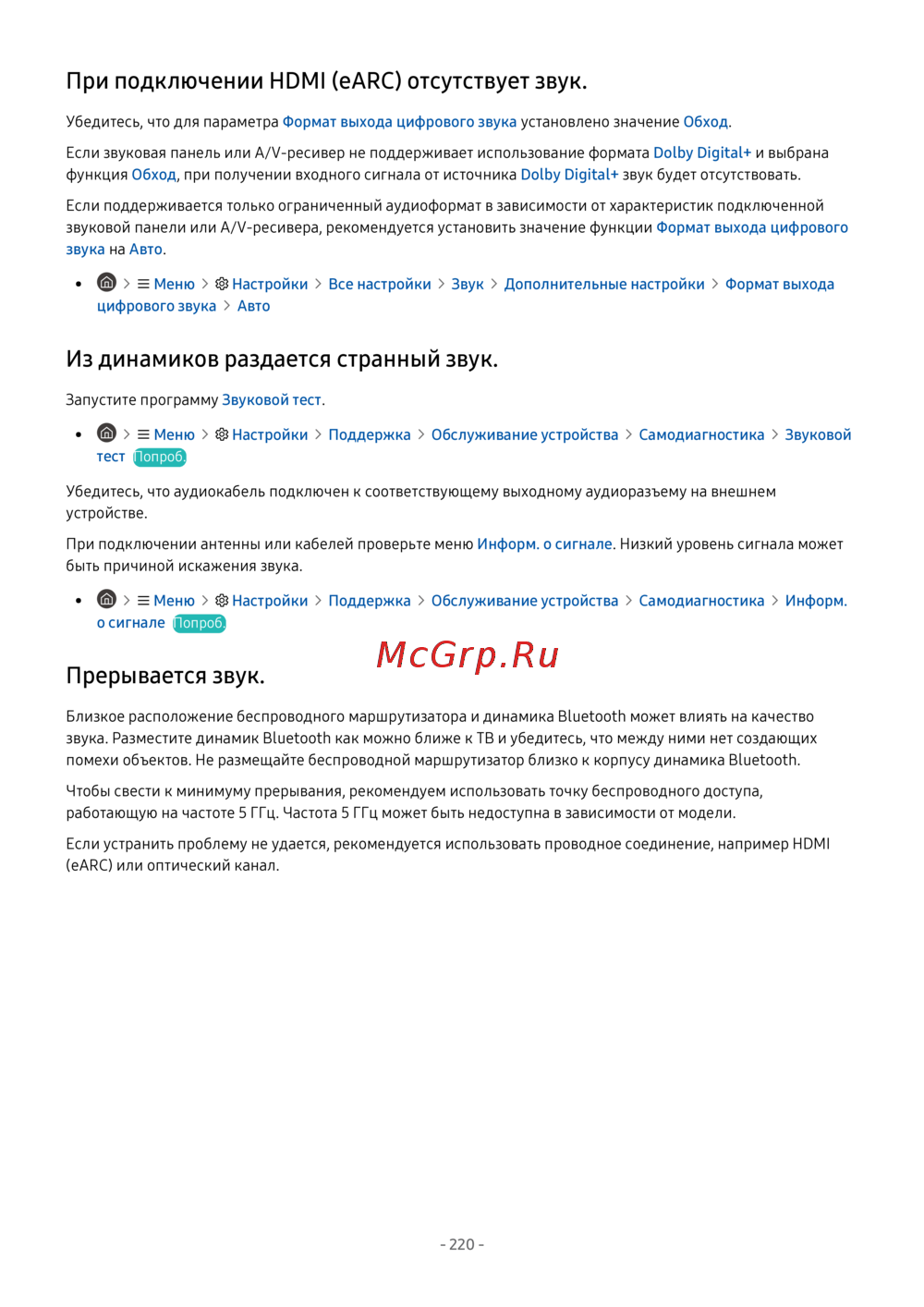 - Если из звуковой панели нет звука и она подключена к тв с помощью кабеля hdmi проверьте разъем hdmi earc с обратной стороны тв p.255