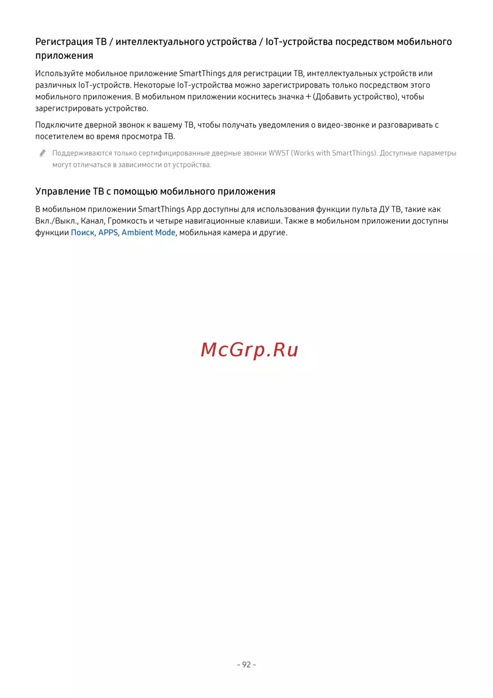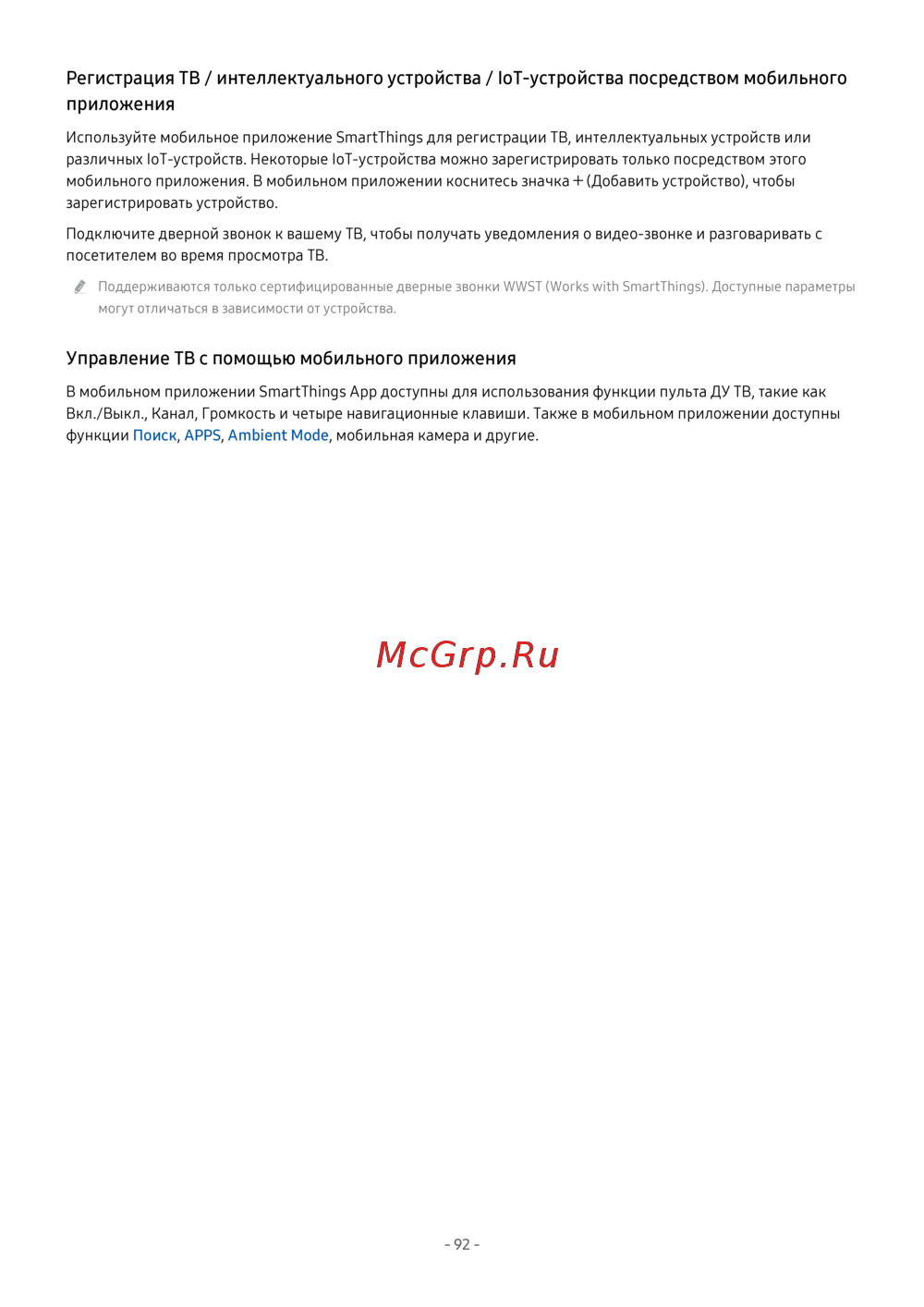 Используйте мобильное приложение SmartThings для регистрации ТВ, интеллектуальных устройств или