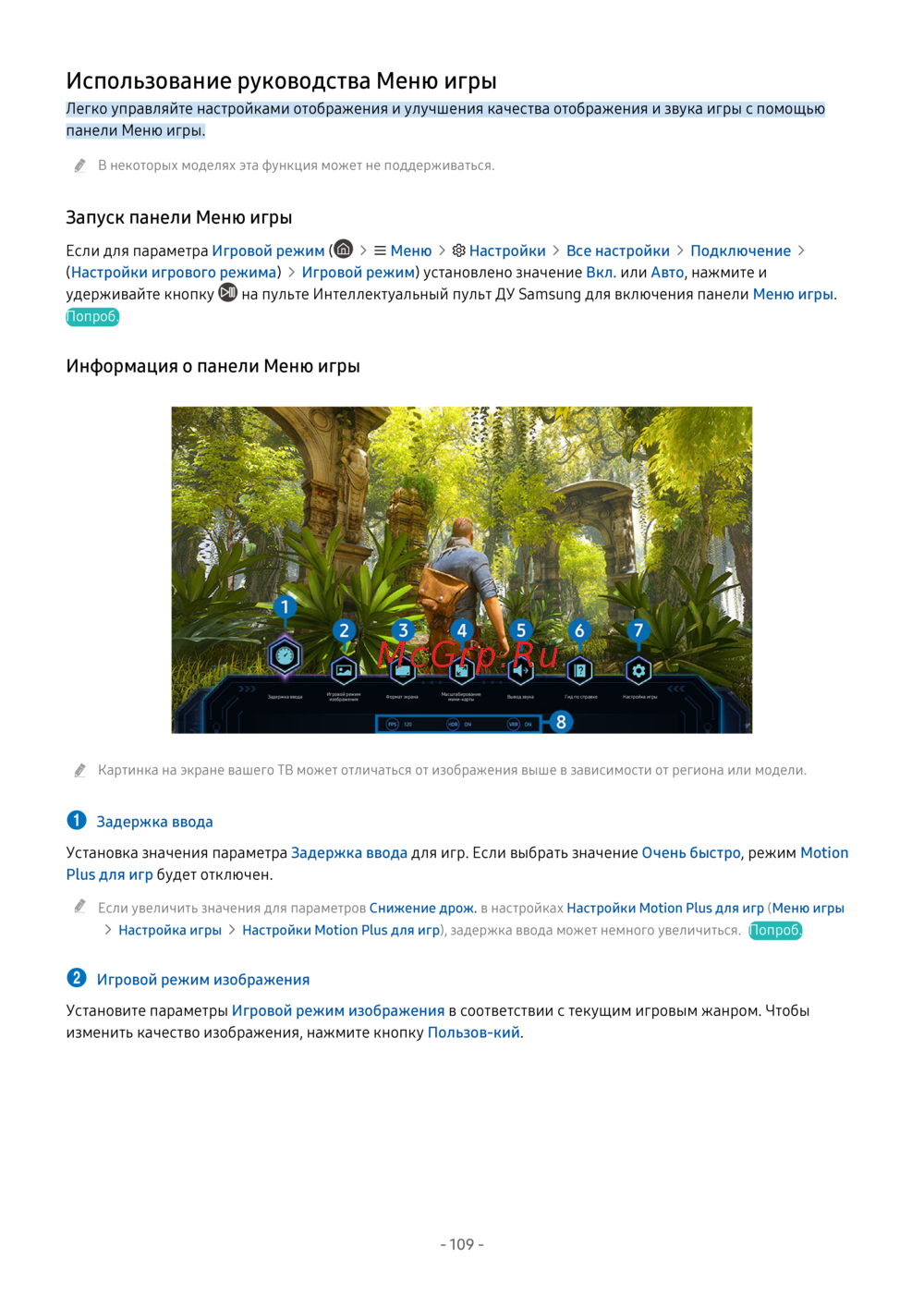 Samsung UE65BU8000U [109/299] Использование руководства меню игры