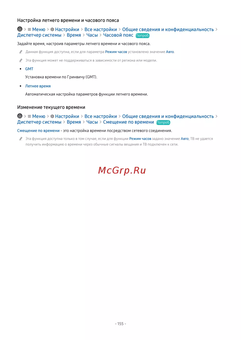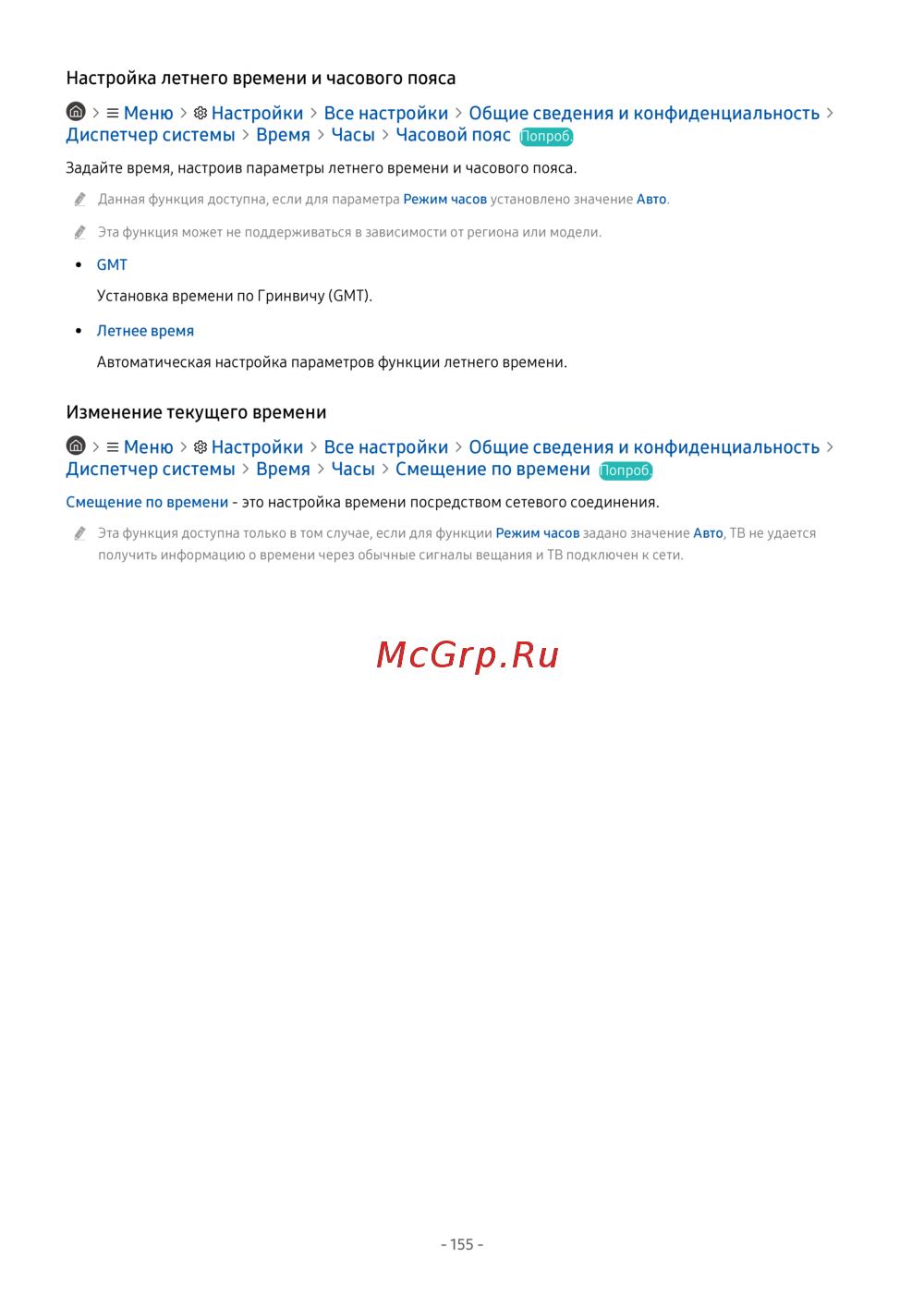 Эта функция доступна только в том случае, если для функции Режим часов задано значение Авто, ТВ не удается