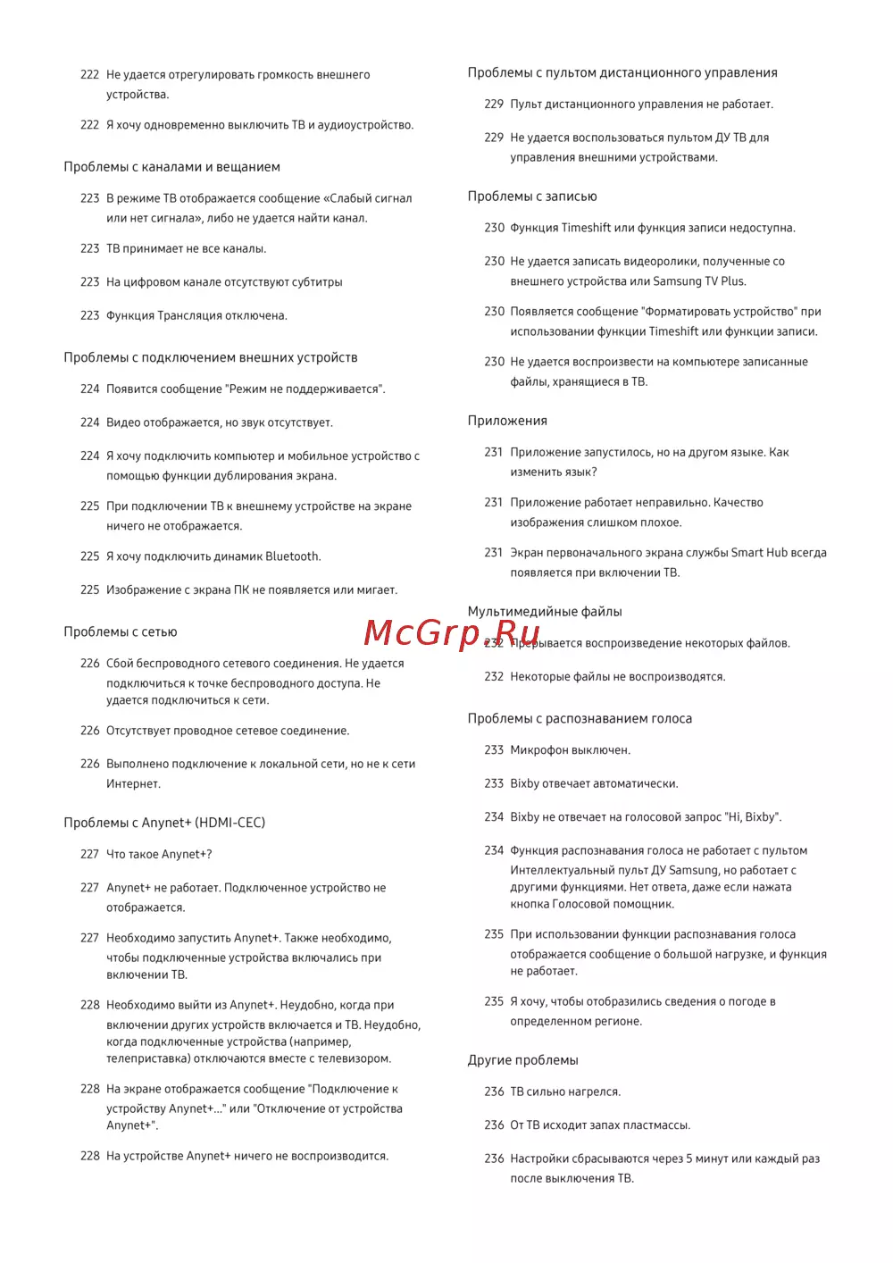 - Если оно не включается удостоверьтесь что кабель правильно подключен к устройству и к розетке питания p.249
