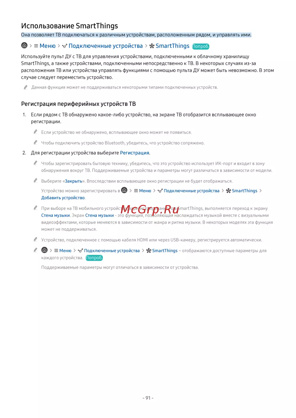 SmartThings, а также устройствами, подключенными непосредственно к ТВ. В некоторых случаях из-за