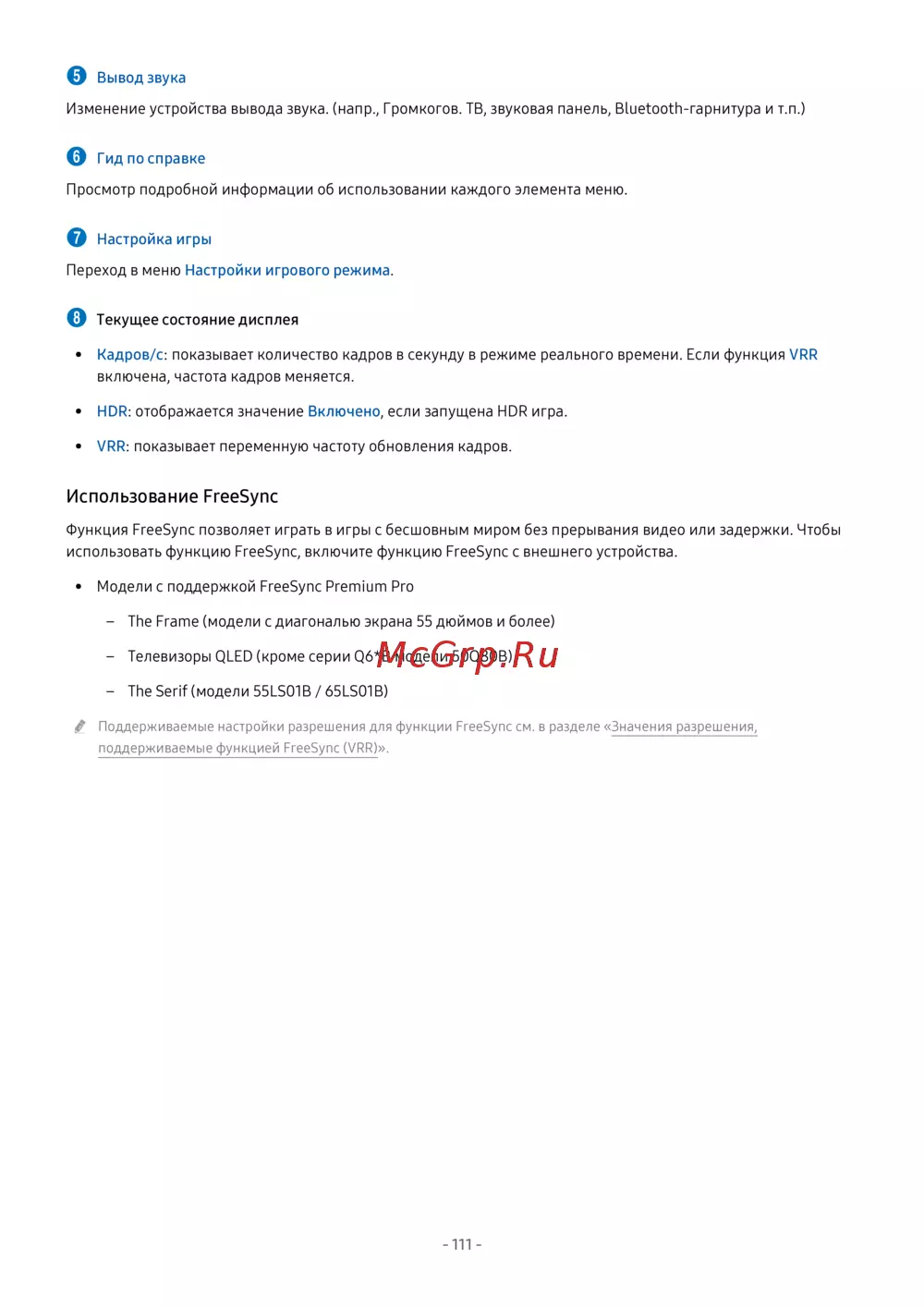 использовать функцию FreeSync, включите функцию FreeSync с внешнего устройства.