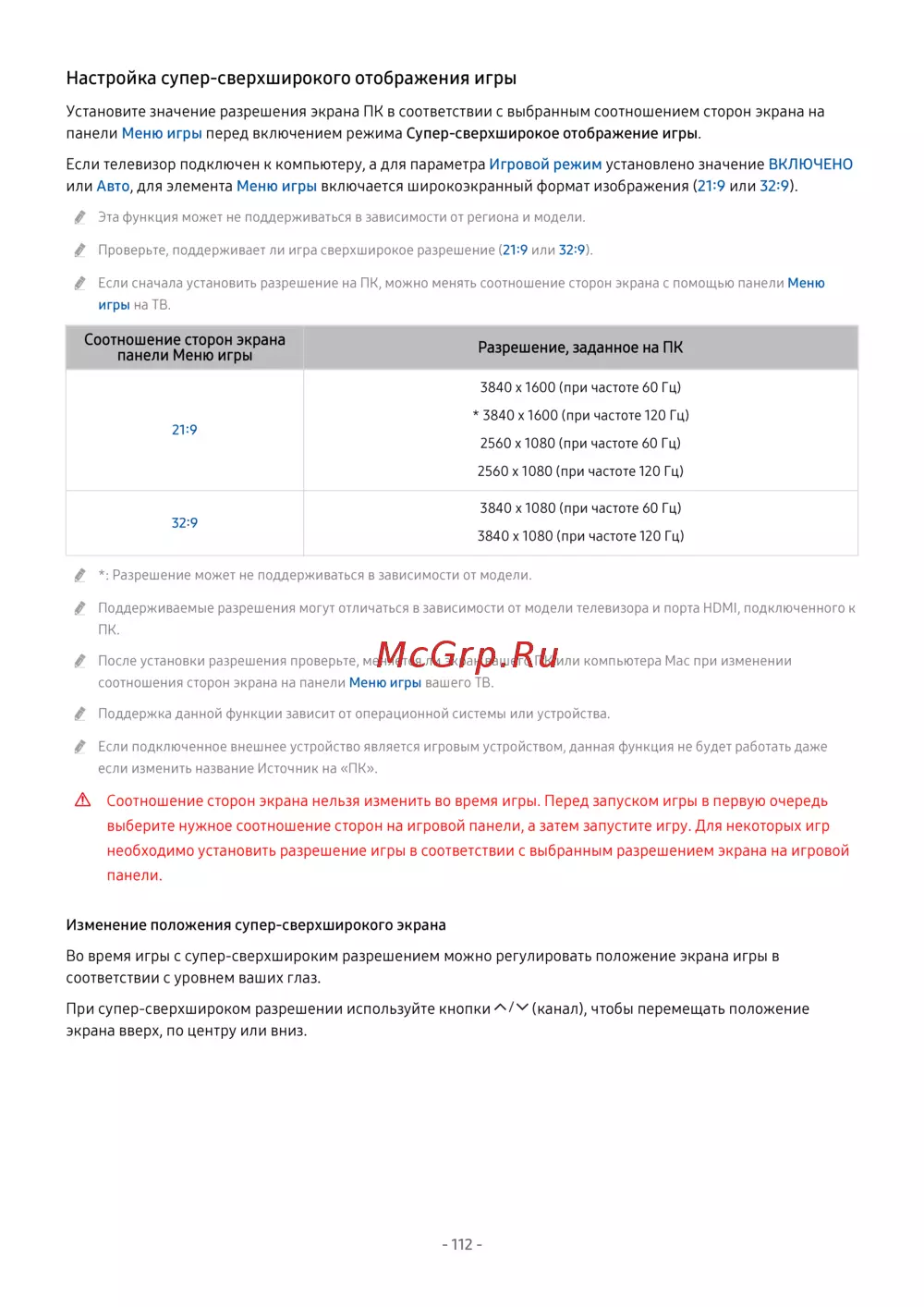 При супер-сверхшироком разрешении используйте кнопки (канал), чтобы перемещать положение