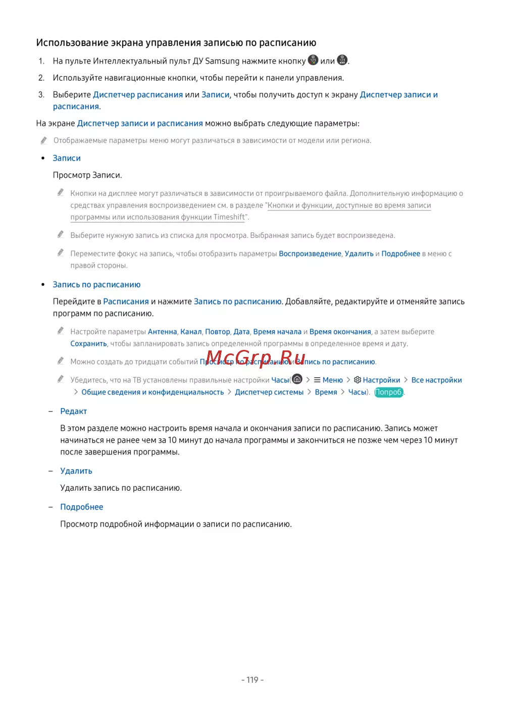- Настройка просмотра по расписанию p.289