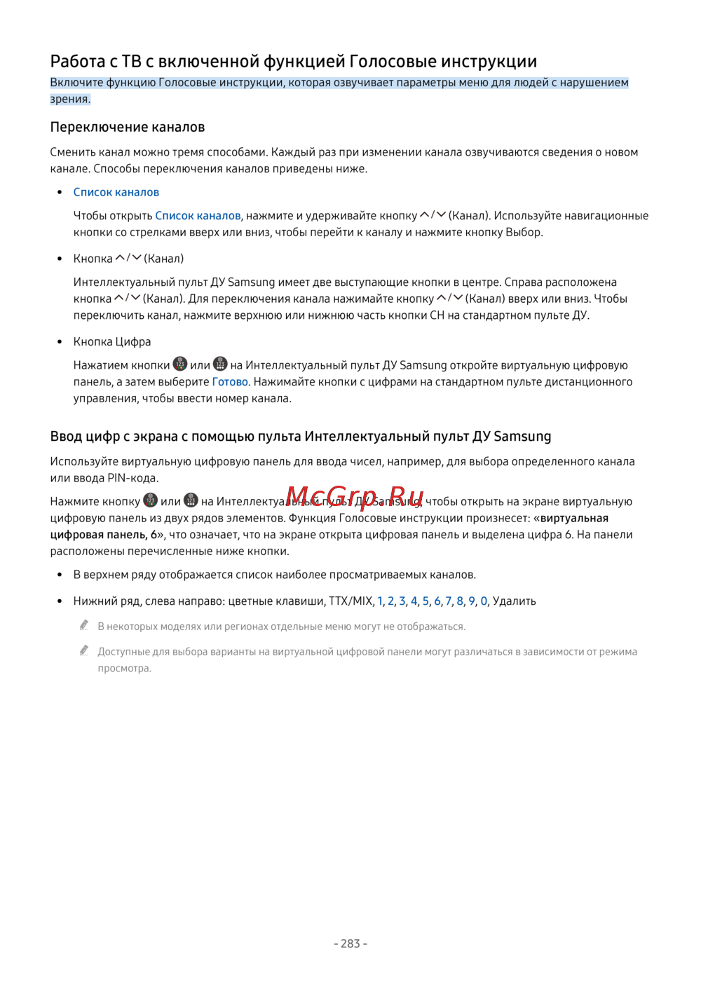- Работа с тв с включенной функцией голосовые инструкции p.283