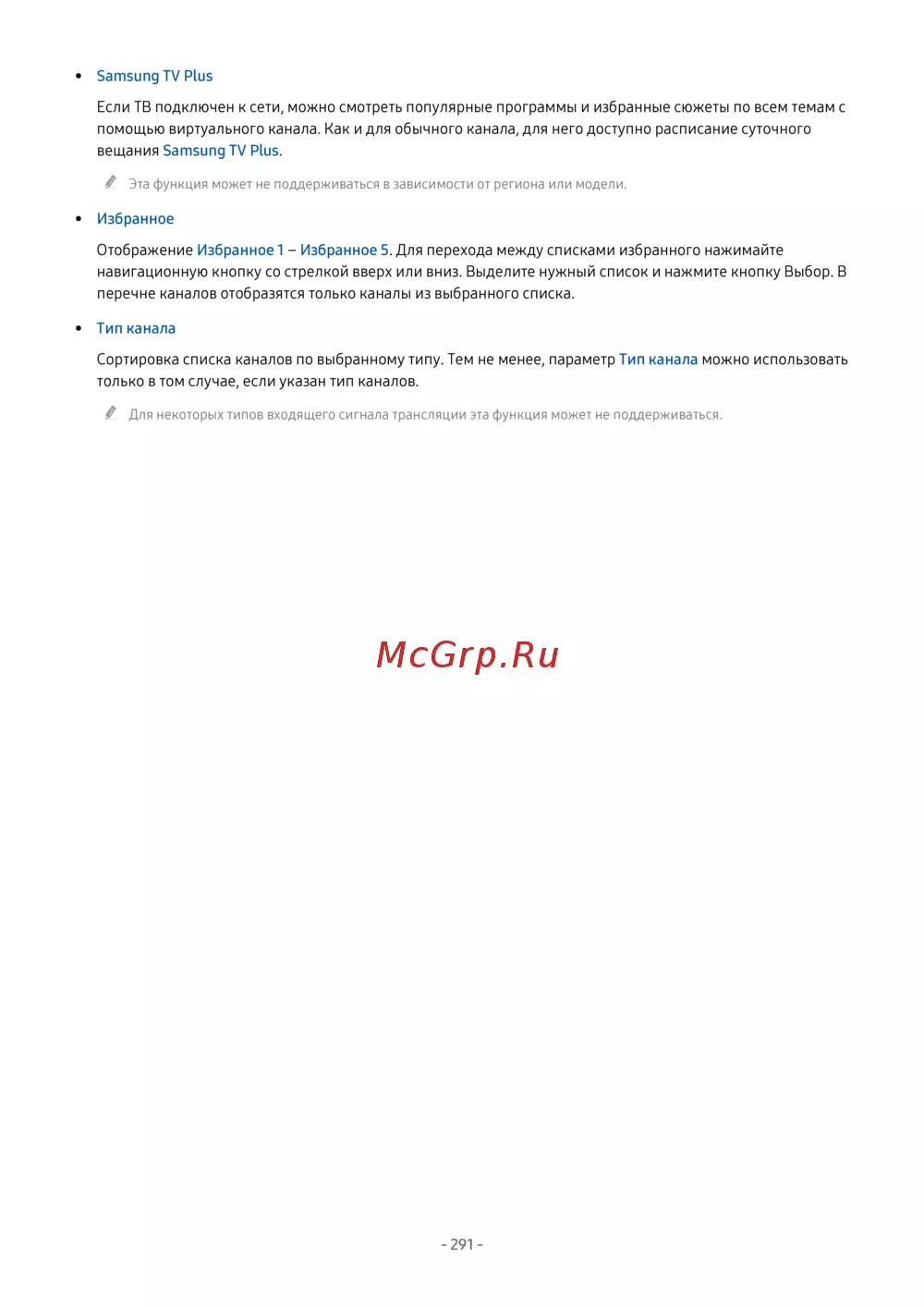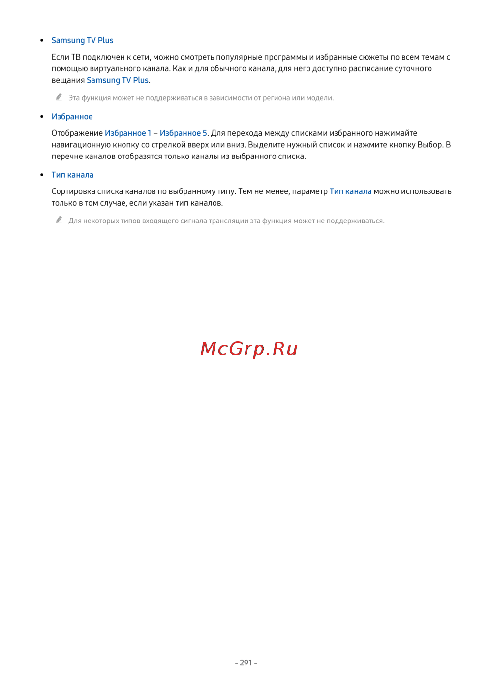 - Использование руководства список каналов p.290