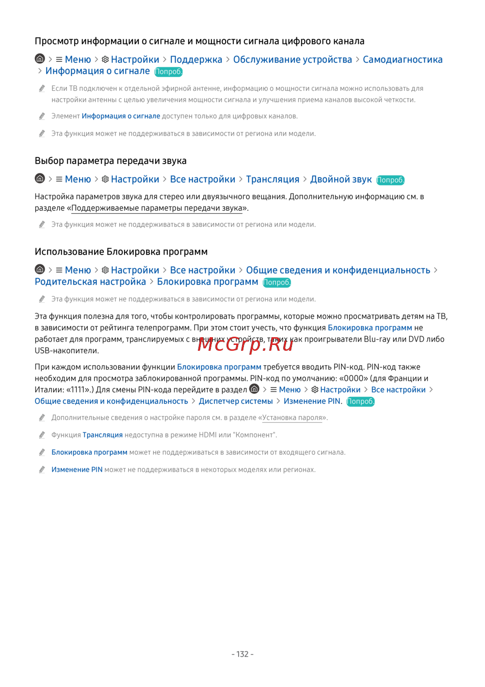 - Меню настройки поддержка открыть e manual p.298