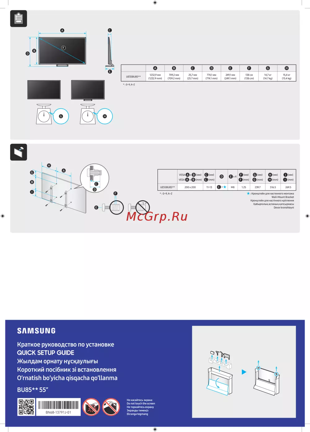 Samsung UE55BU8500U Краткое руководство по установке онлайн