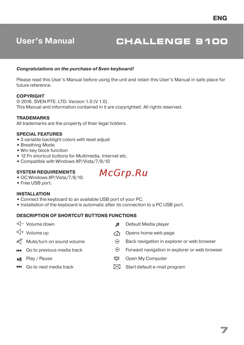 © 2016. SVEN PTE. LTD. Version 1.0 (V 1.0).