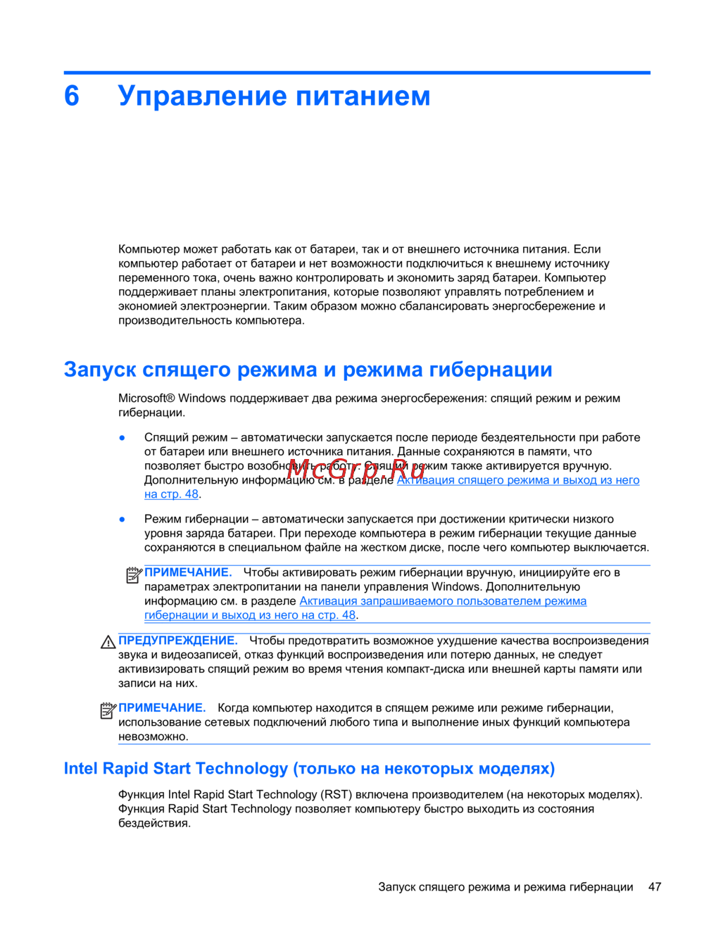 - Действия пользователя в условиях низкого уровня заряда батареи если компьютер не может выйти из режима гибернации p.62