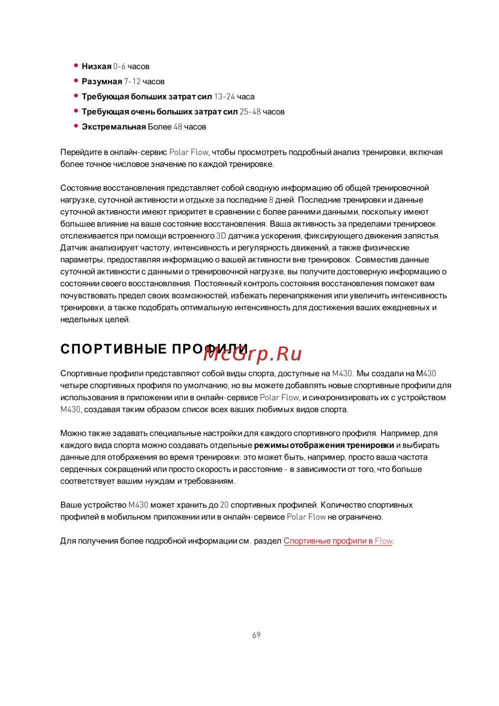 - Описание вашей тренировочной нагрузки отображается после каждой тренировки в сводке по тренировке в приложении polar примерная оценка времени восстановления для различных уровней тренировочной нагрузки отображается здесь p.68