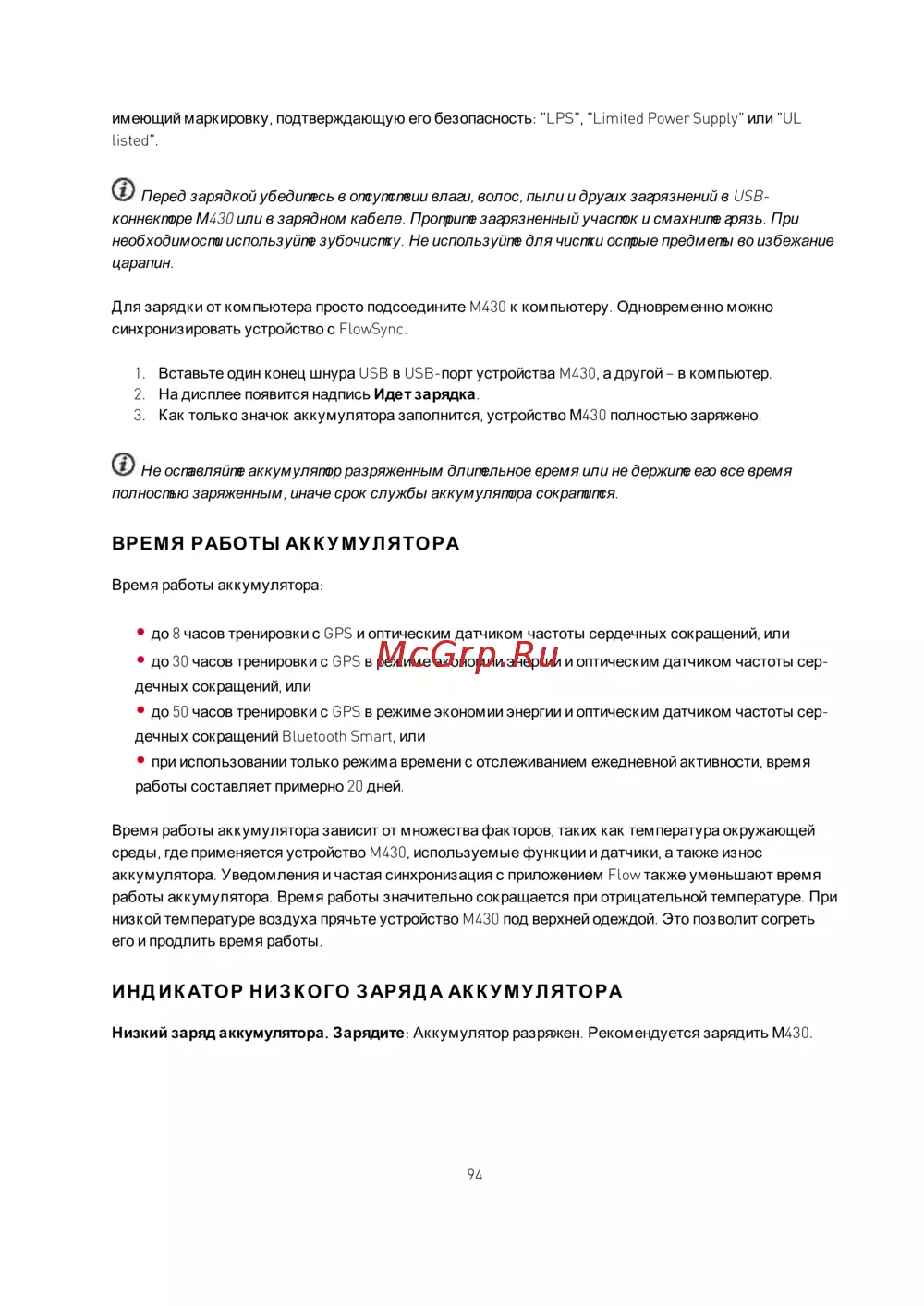 Polar M430 [94/103] Инд икатор низкого заряд а аккумулятора