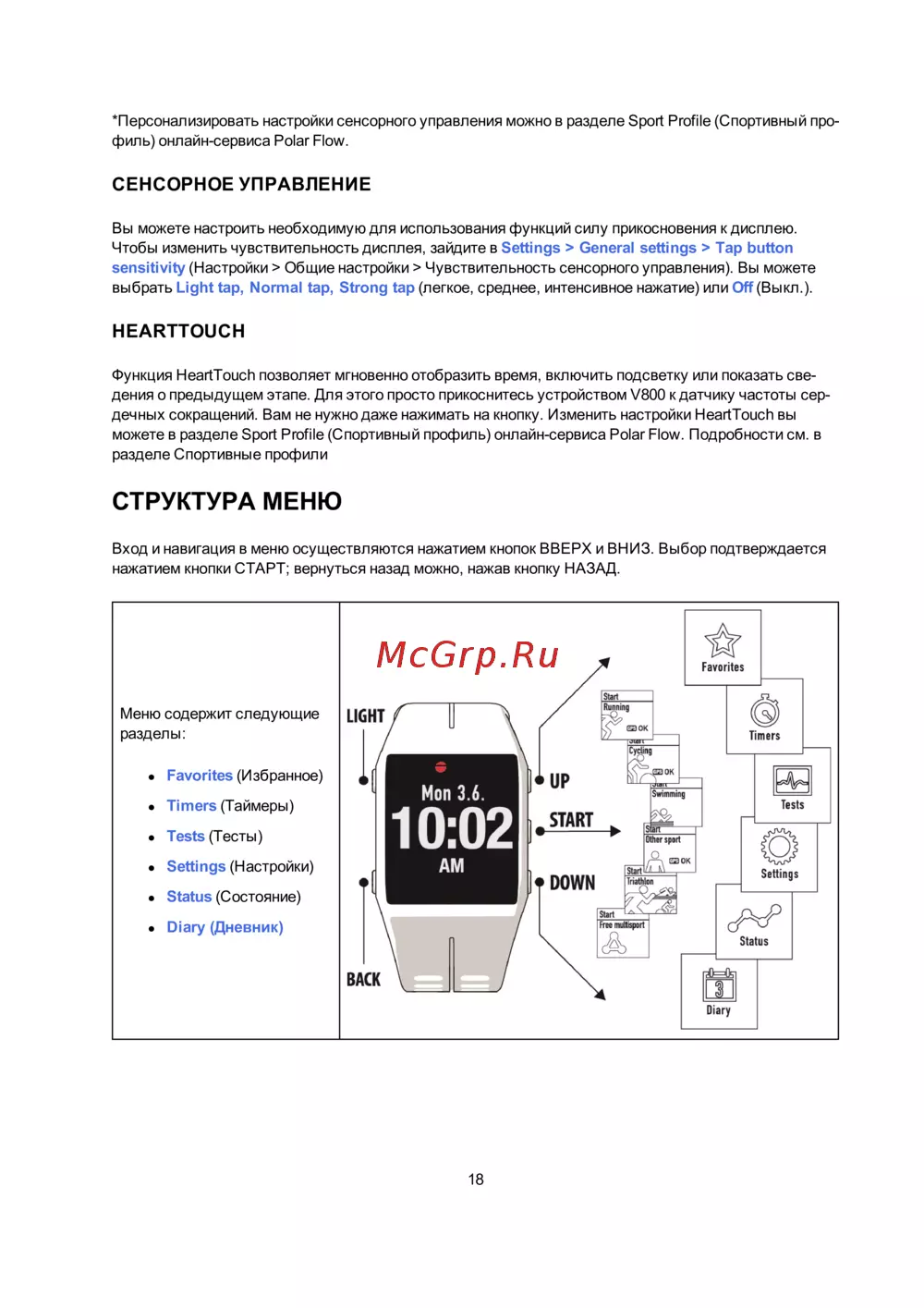 Polar V800 HR (H10) [18/97] Структура меню