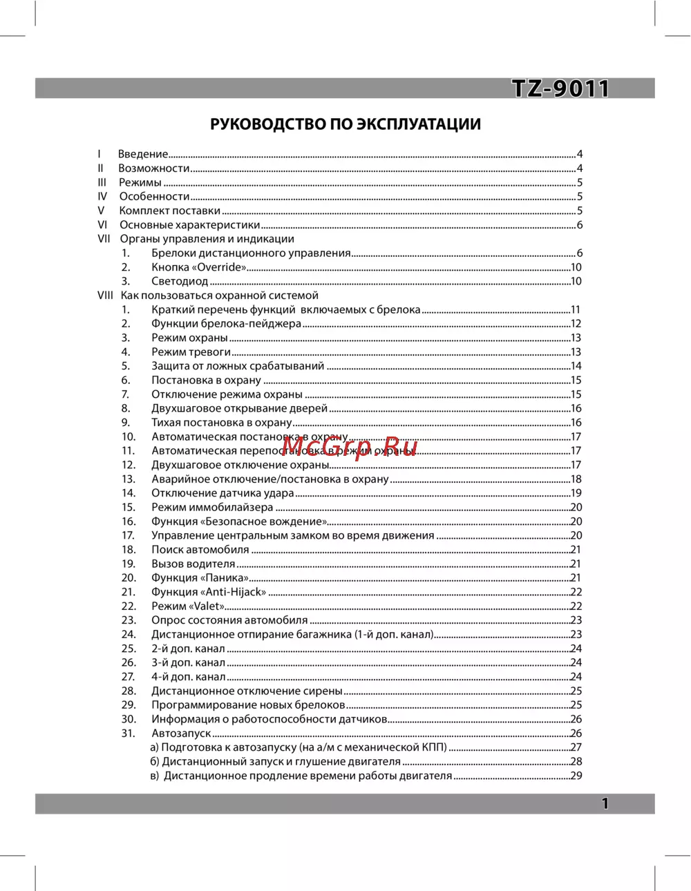 1. Краткий перечень функций включаемых с брелока .............................................................11