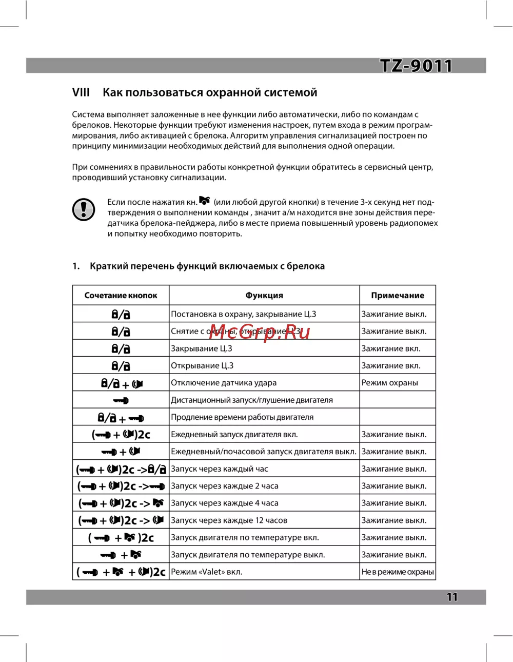 Tomahawk T Z - 9011 [11/52] Viii как пользоваться охранной системой