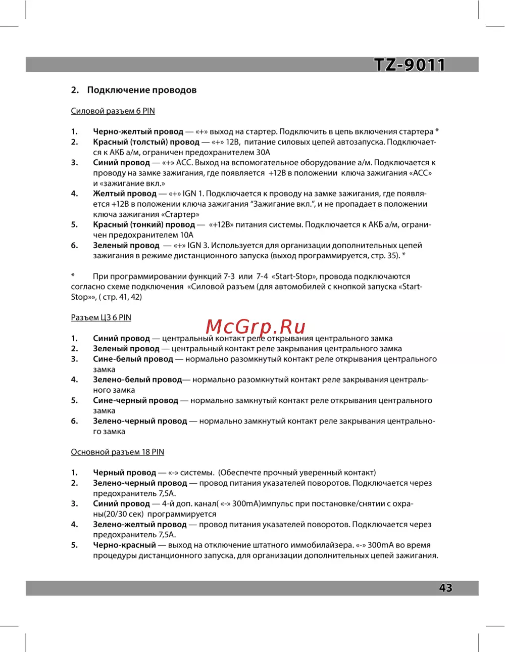 - Разъем цз 6 pin основной разъем 18 pin p.42