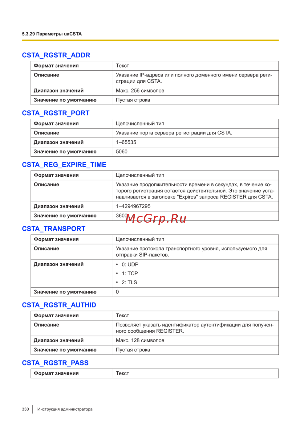 5.3.29 Параметры uaCSTA