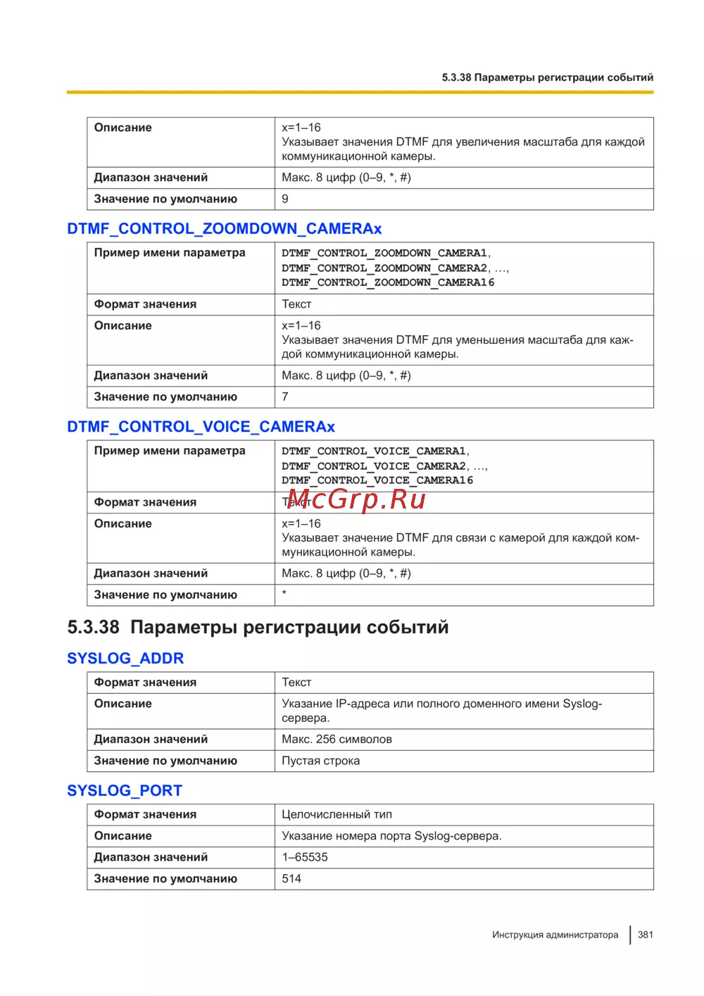 Пример имени параметра DTMF_CONTROL_ZOOMDOWN_CAMERA1,