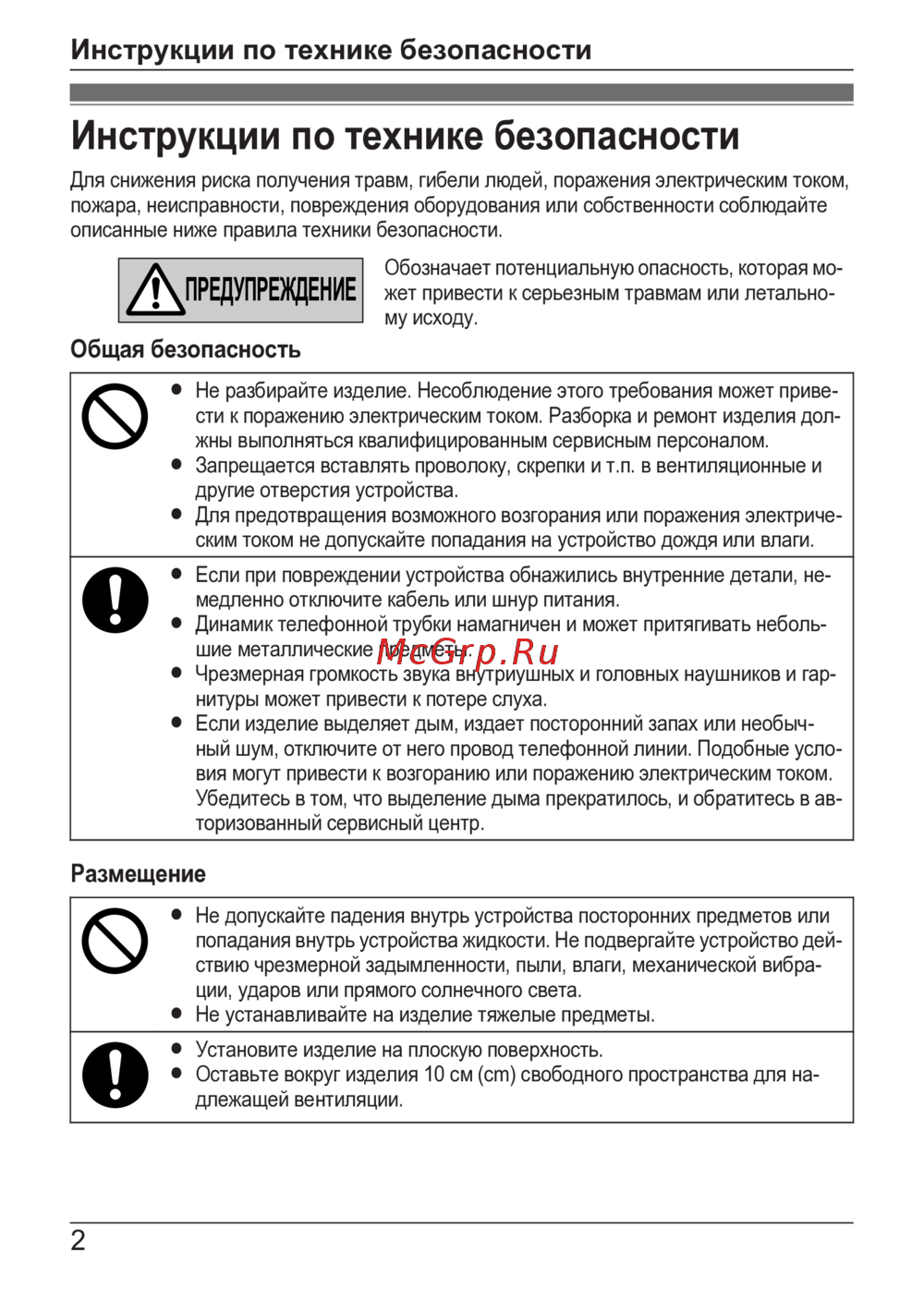 попадания внутрь устройства жидкости. Не подвергайте устройство дей-
