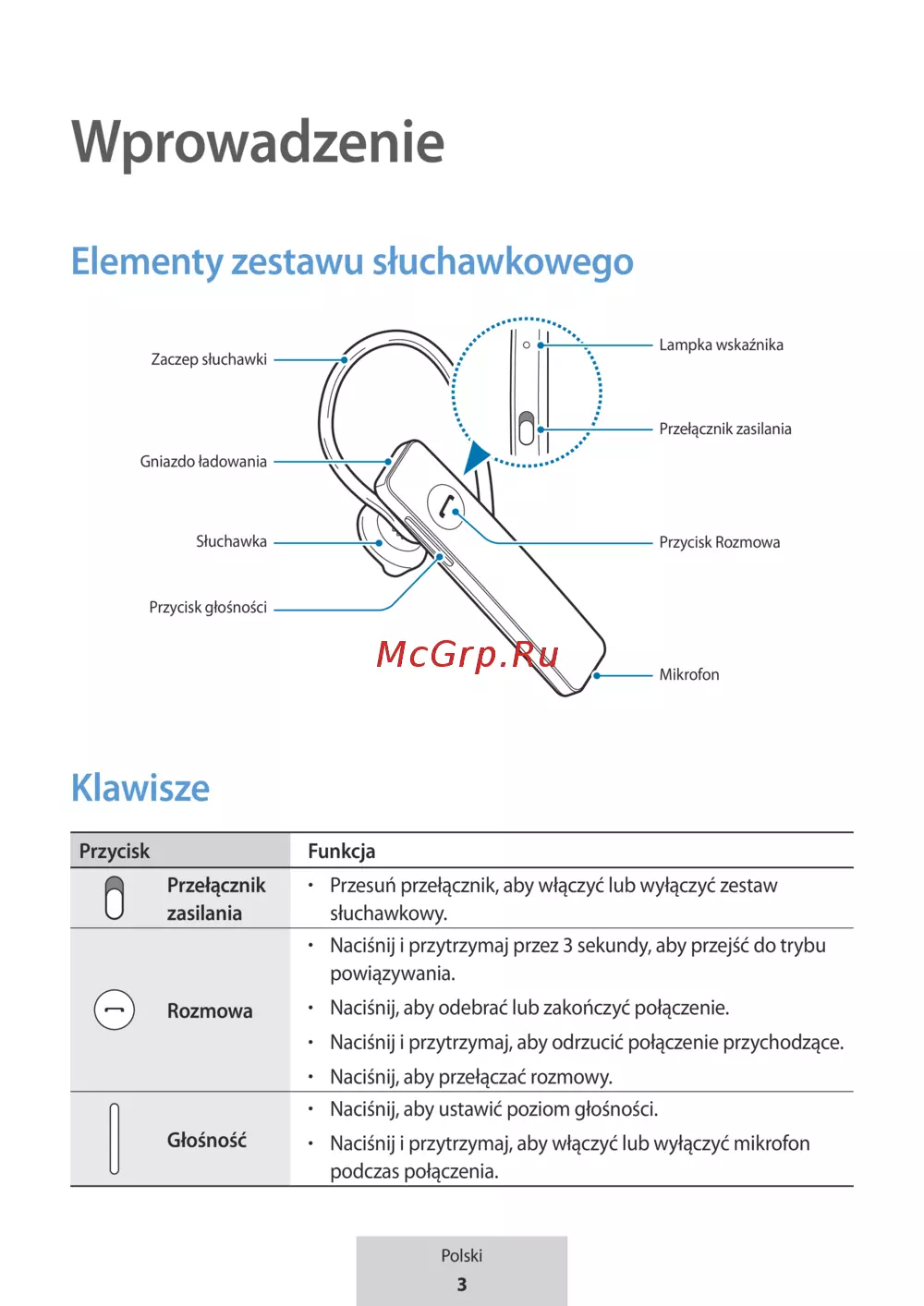 Naciśnij iprzytrzymaj, aby włączyć lub wyłączyć mikrofon