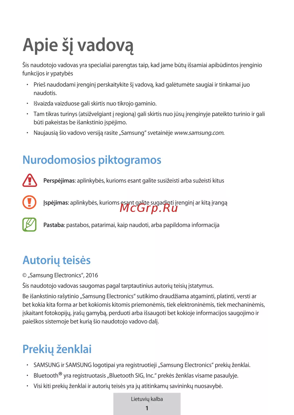 Naujausią šio vadovo versiją rasite „Samsung“ svetainėje