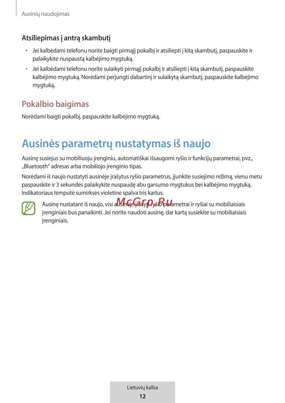 Ausinę nustatant iš naujo, visi ausinėje įrašyti ryšio parametrai ir ryšiai su mobiliaisiais