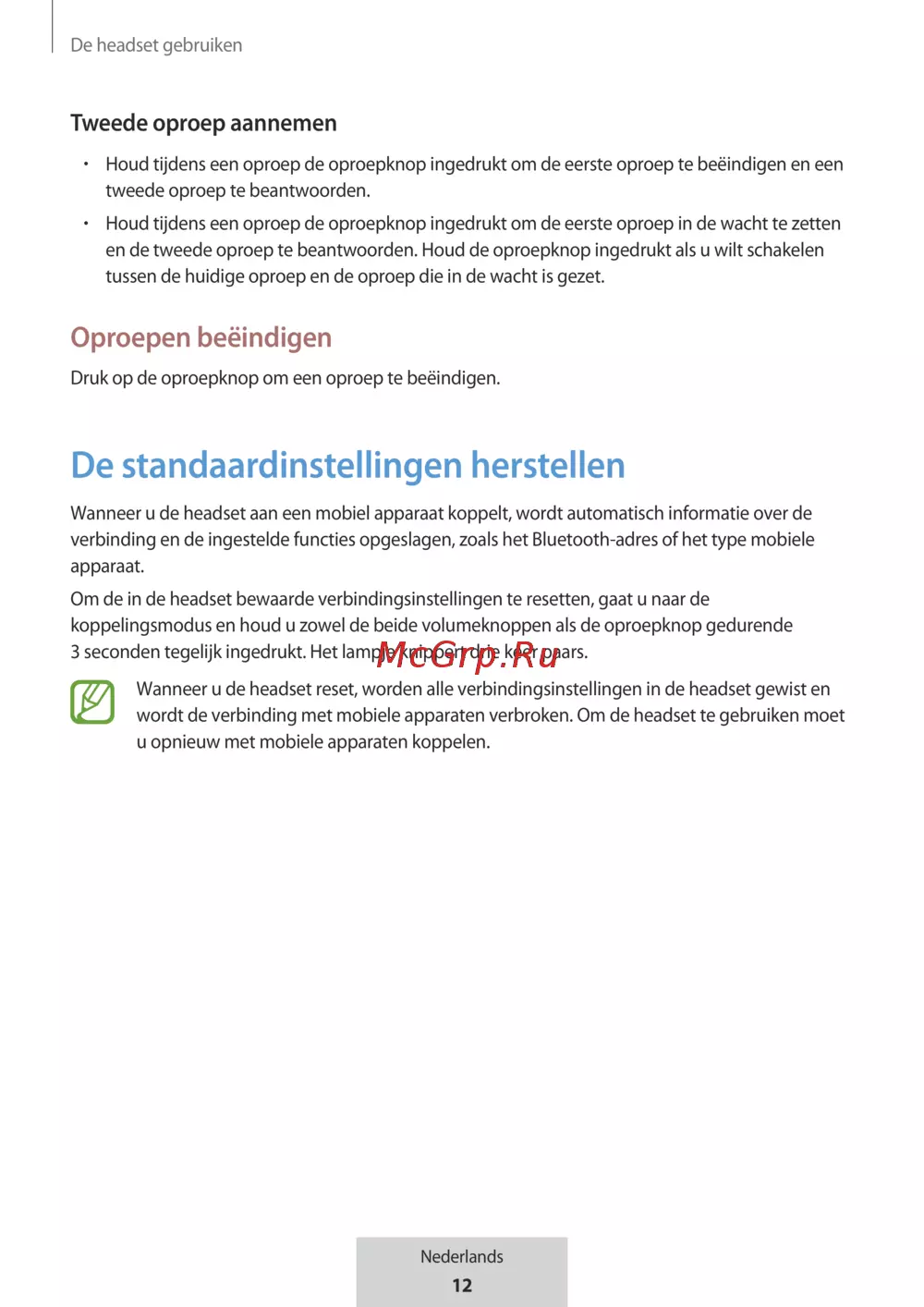 wordt de verbinding met mobiele apparaten verbroken. Om de headset te gebruiken moet