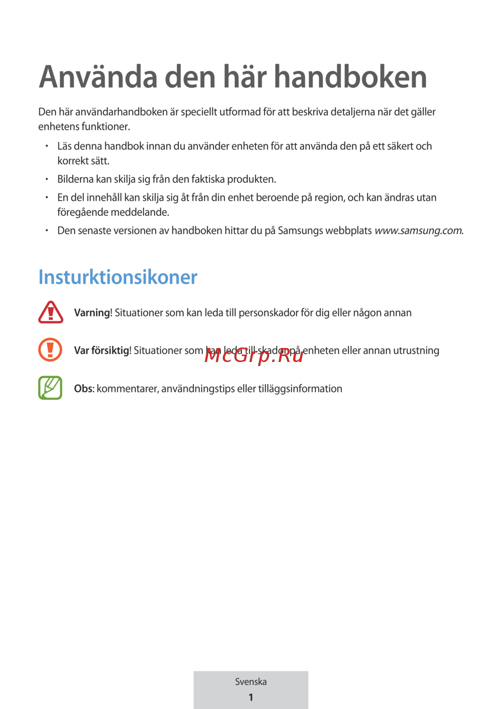 Den senaste versionen av handboken hittar du på Samsungs webbplats