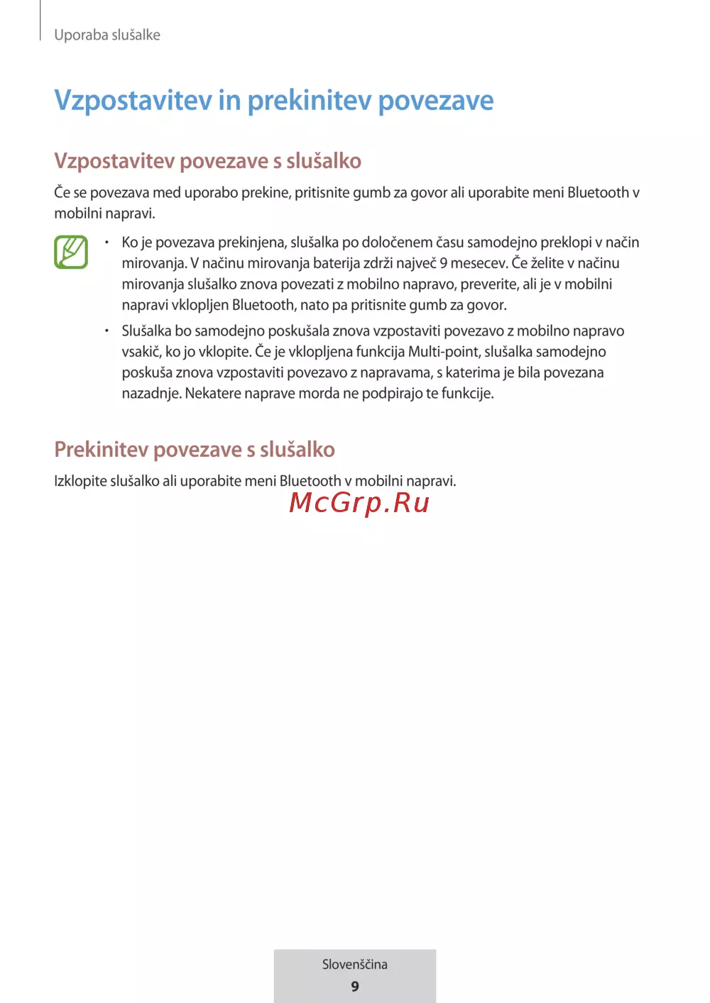 Slušalka bo samodejno poskušala znova vzpostaviti povezavo z mobilno napravo