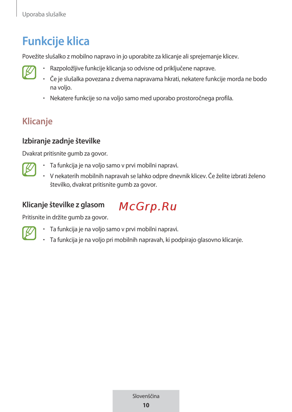 Če je slušalka povezana z dvema napravama hkrati, nekatere funkcije morda ne bodo
