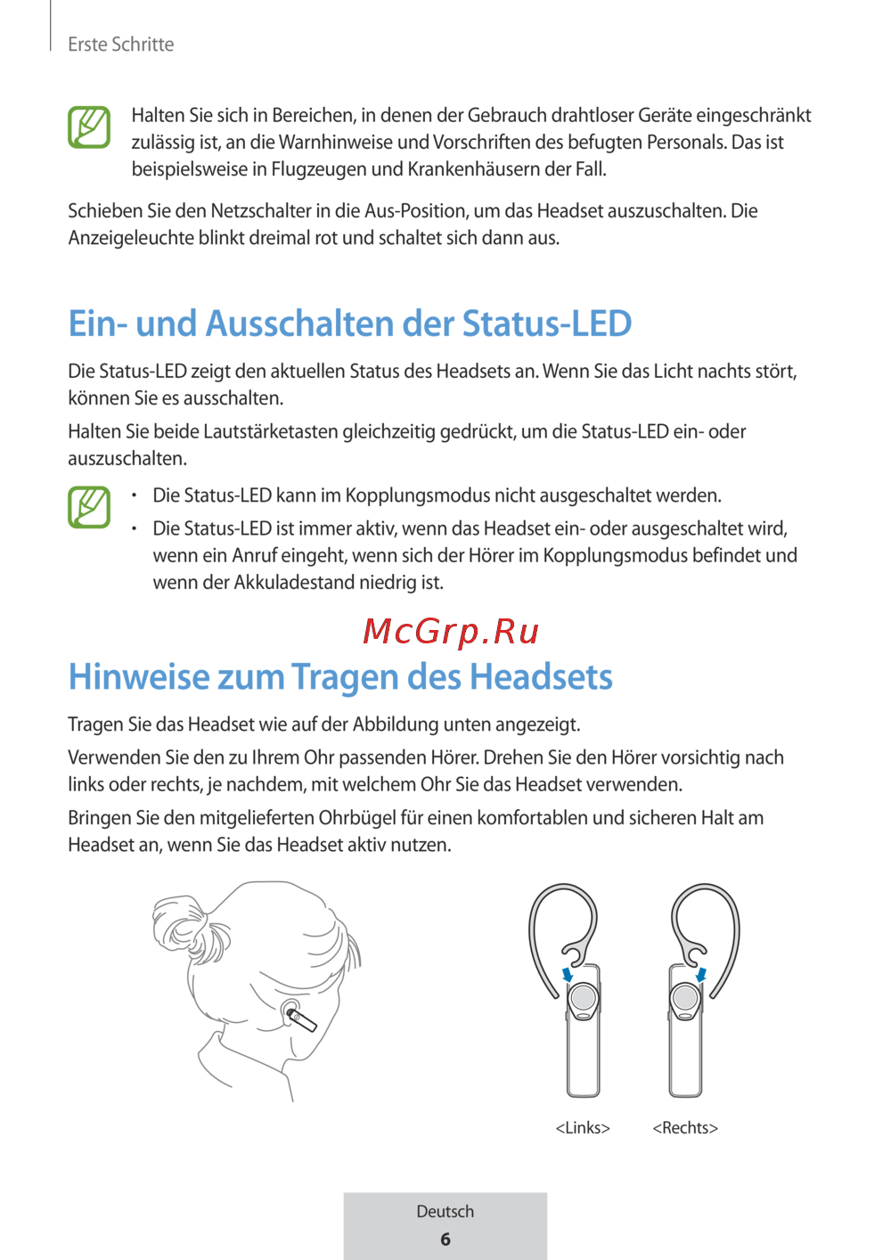 Hinweise zum Tragen des Headsets