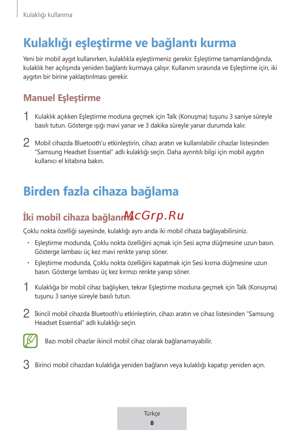 Çoklu nokta özelliği sayesinde, kulaklığı aynı anda iki mobil cihaza bağlayabilirsiniz.