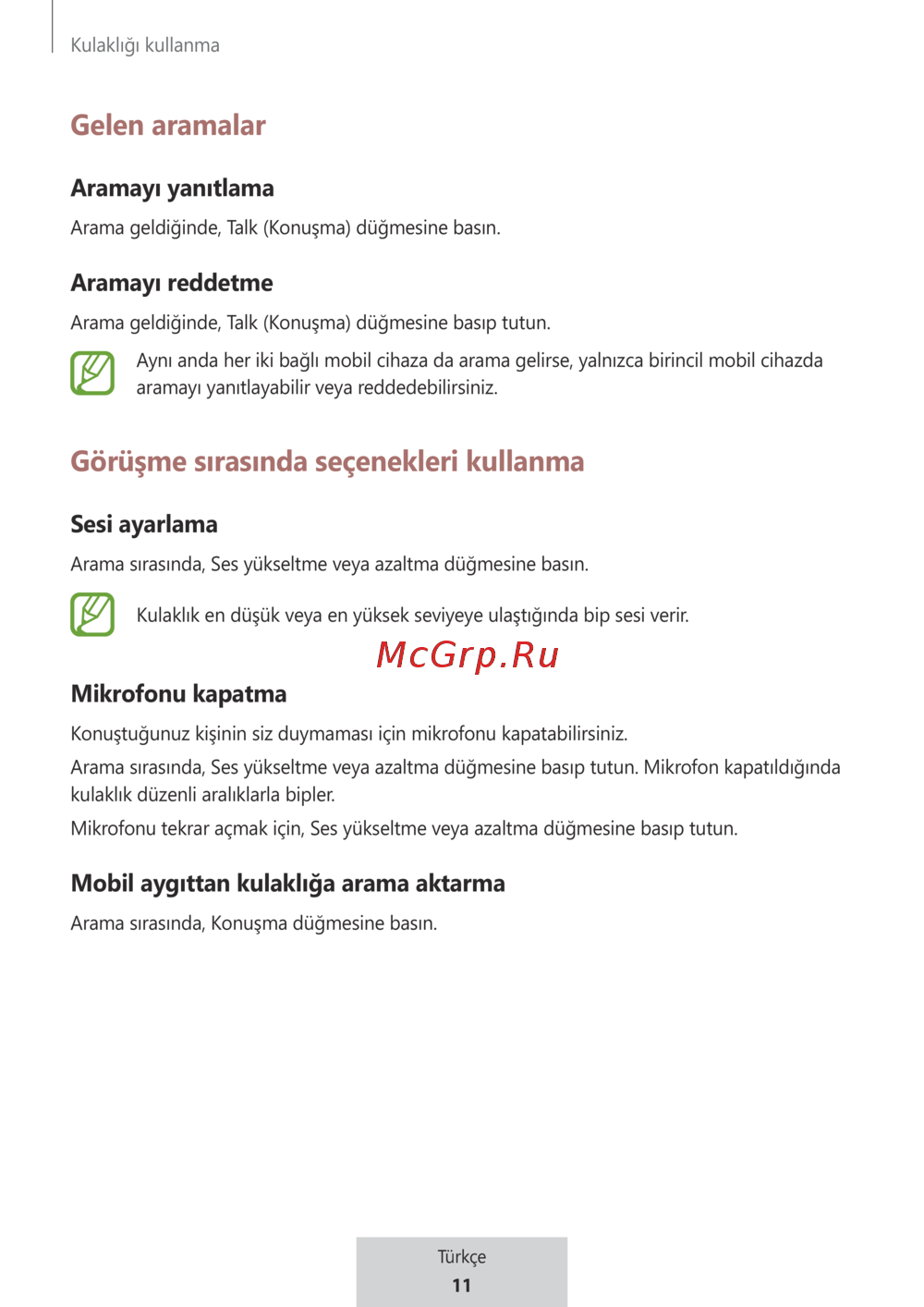 Samsung EO-MG920 [397/594] Mobil aygıttan kulaklığa arama aktarma
